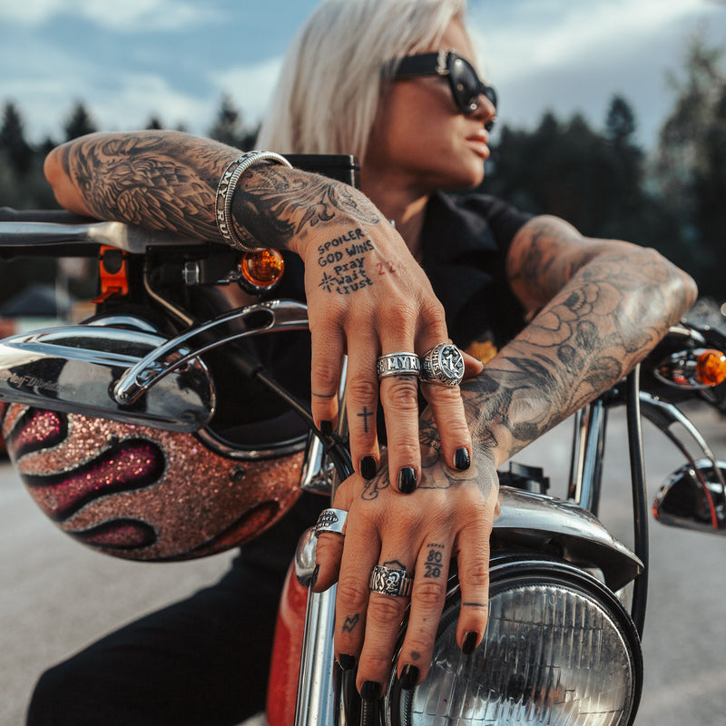 Der hochwertige Biker-Schmuck & Silberschmuck für Männer und Frauen ist die Verbindung von Exklusivität und Free Spirit, von coolem Luxus und Rock 'n' Roll.