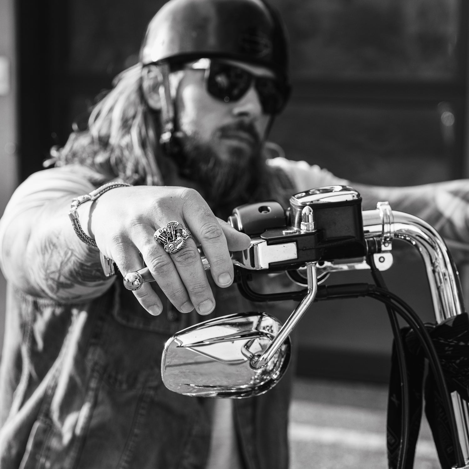 Ein Ring mit Persönlichkeit, perfekt für Biker, Freigeister und alle, die Stärke, Individualität und echten Charakter zeigen wollen. Robust, markant und mit intensiver Symbolkraft. Ein Schmuckstück, das nicht einfach getragen wird, sondern gelebt wird.
