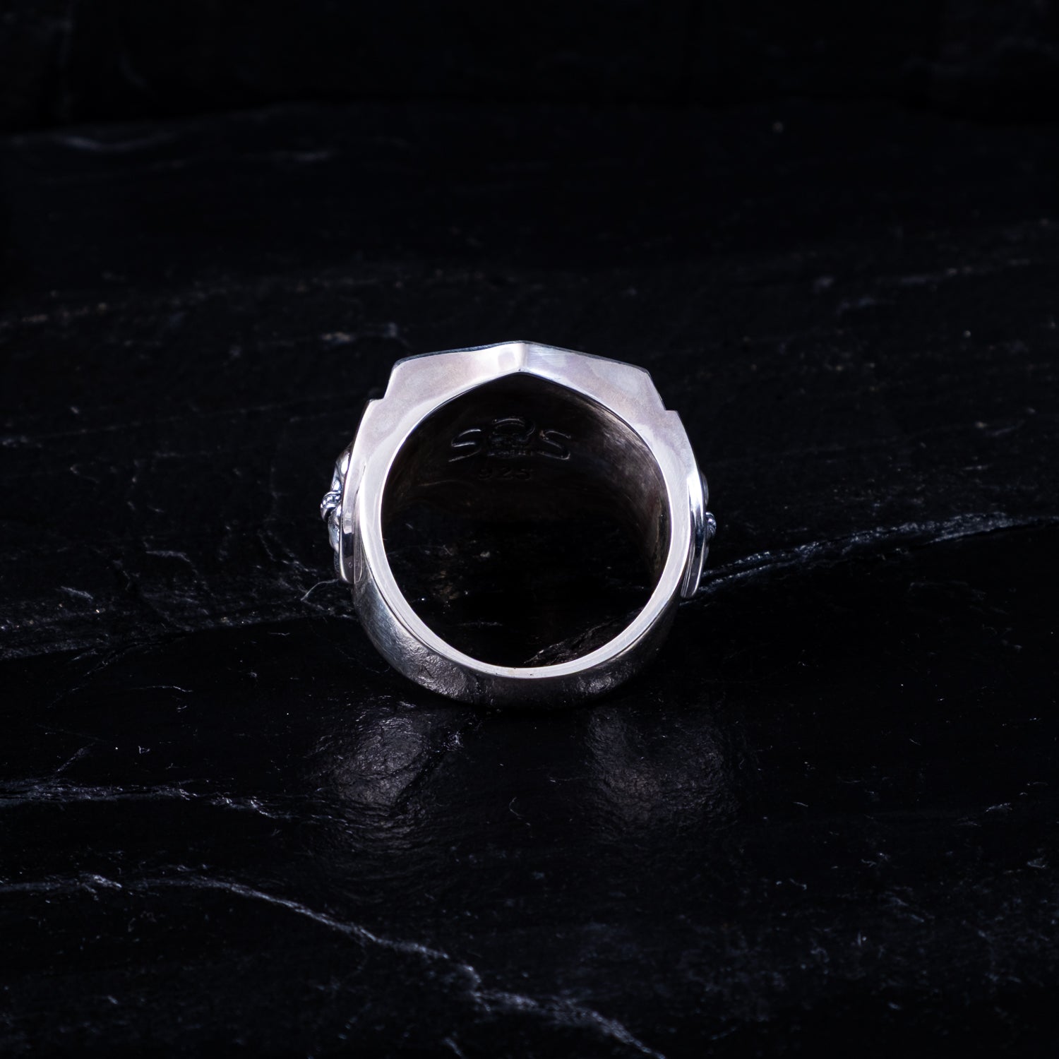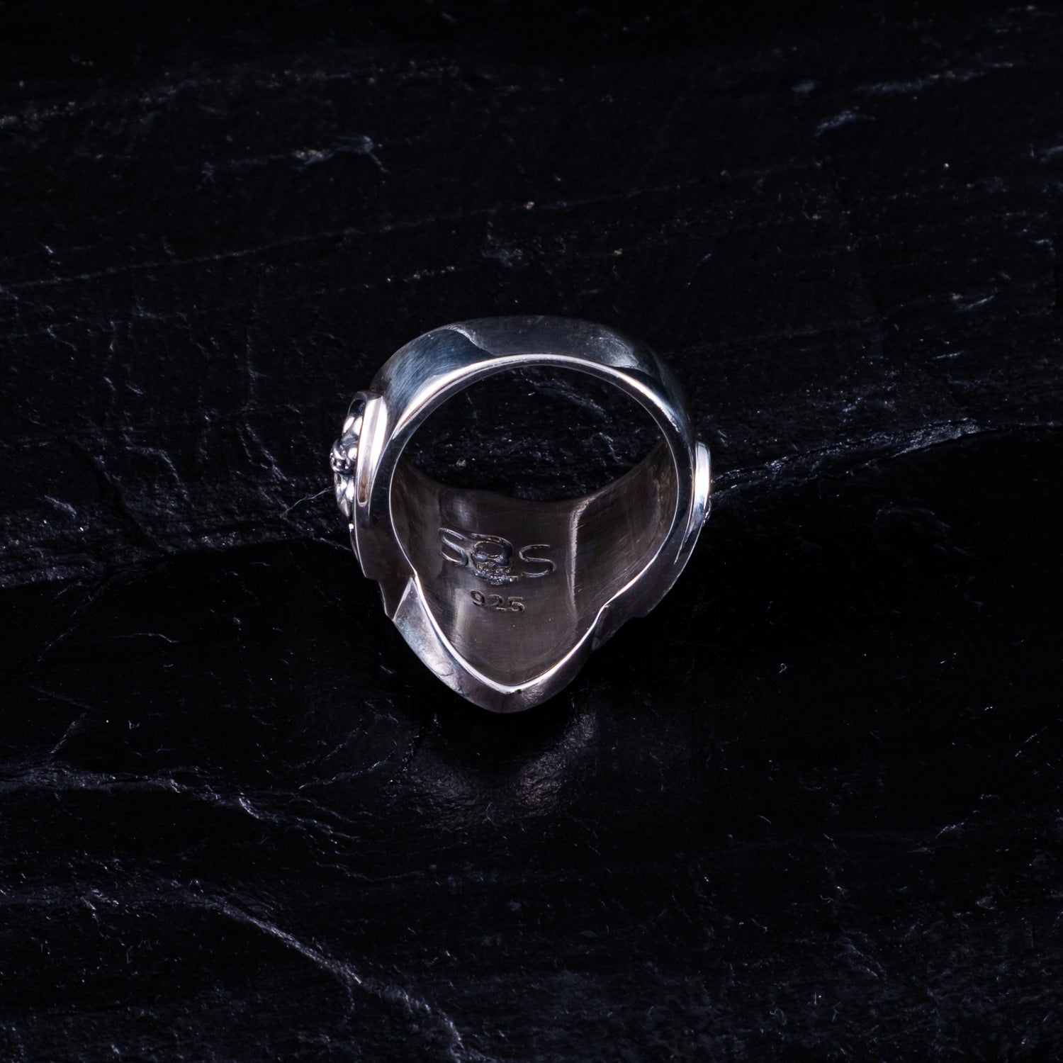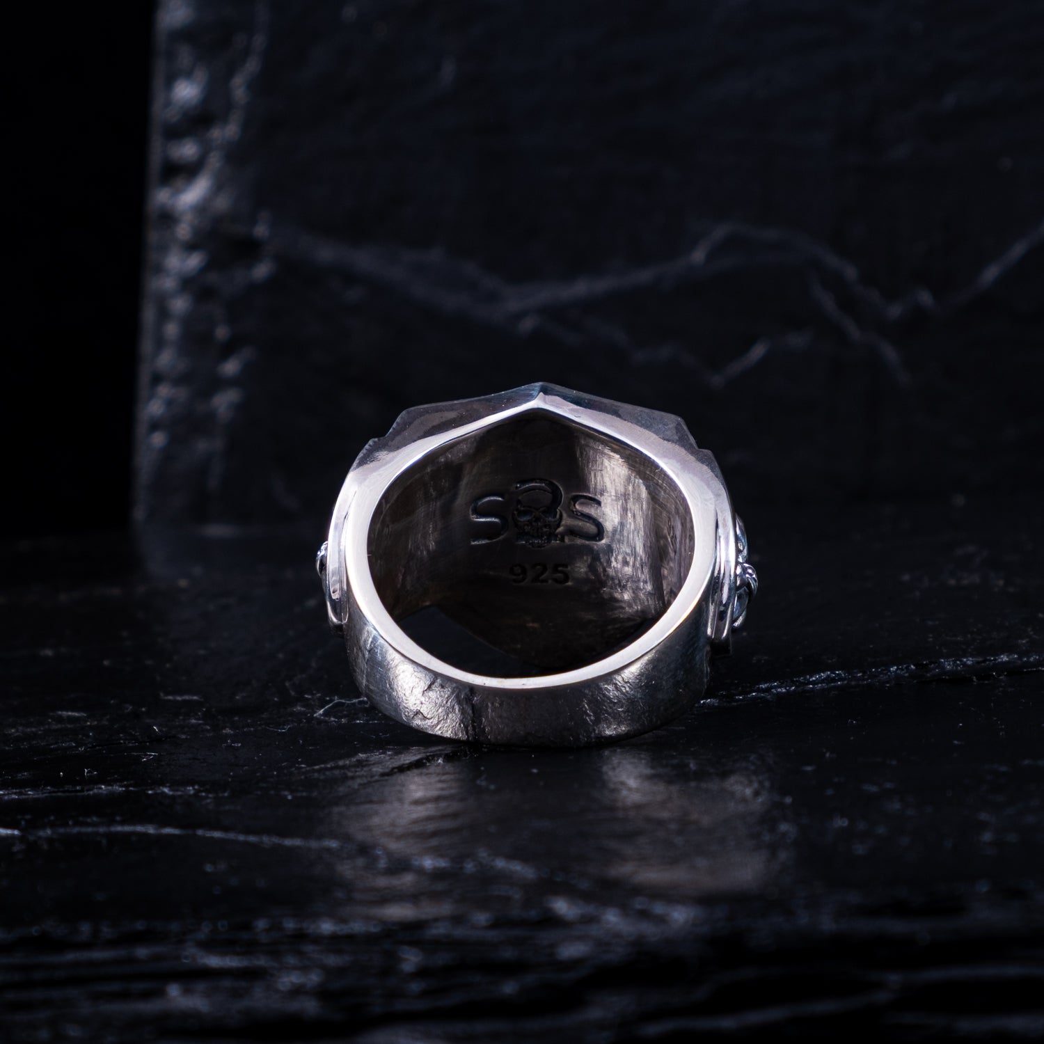Der Ring ist sehr massiv gefertigt, liegt spürbar schwer am Finger und vermittelt sofort Qualität. Durch sein ausgewogenes Design eignet er sich als Unisex-Ring für Frauen und Männer. Gefertigt aus massivem Sterling Silber und in Handarbeit umgesetzt, steht dieser Siegelring für klassische Symbolik und starke Präsenz.