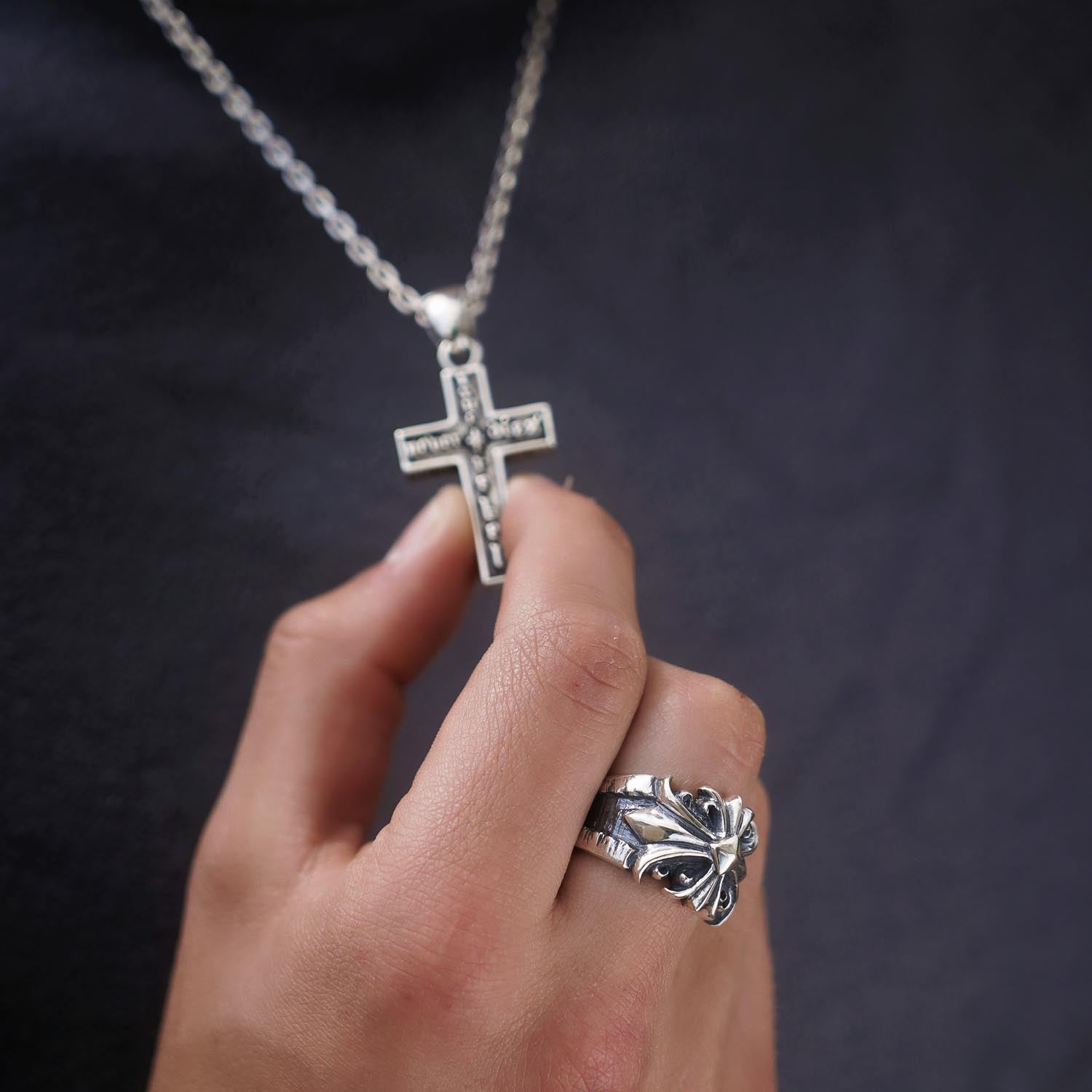 L'anello unisex in argento sterling annerito con una sorprendente croce di giglio è la combinazione perfetta di delicata lavorazione artigianale e solida qualità dei materiali. Le zone scure contrastanti conferiscono profondità al disegno; la croce gigliata è conosciuta come simbolo soprattutto dagli stemmi e ha un carattere combattivo. Indossalo da solo o in combinazione con altri anelli!
