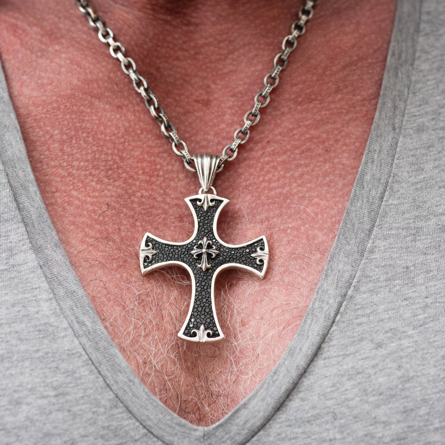 Eccezionale croce solida, con pelle di razza bordata e croce al centro.